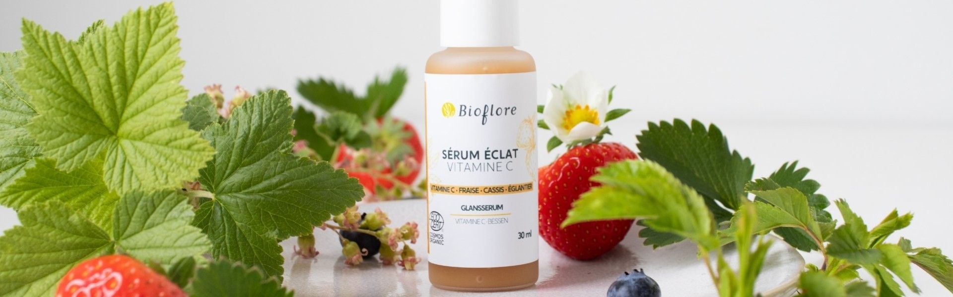 Le sérum éclat de Bioflore repose sur un choix de formulation intéressant : l’ascorbyl glucoside, un dérivé de vitamine C d’origine végétale.