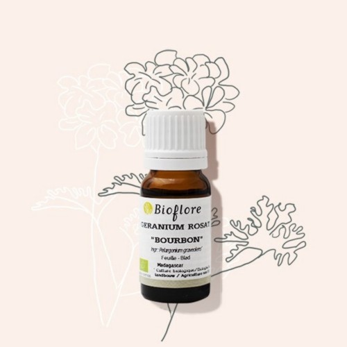 - Hydrolat de Géranium rosat bio : purifiant, régénérant, astringent (resserre les pores)