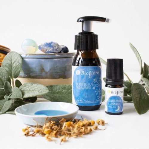Deze massageolie heeft een evenwichtige, krampstillende en kalmerende werking. Door de Blauwe Maanolie op de onderbuik en ter hoogte van de baarmoeder te masseren (altijd voor uitwendig gebruik), worden de ongemakken en krampen die vaak tijdens de menstruatie optreden, verzacht.